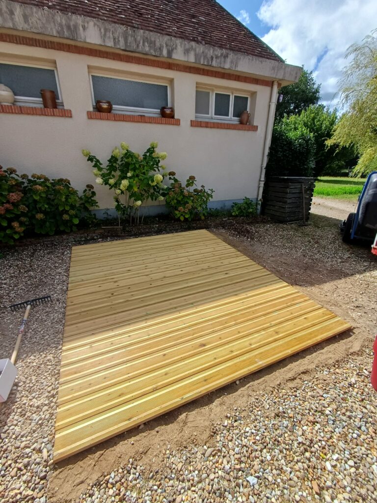 Création d’une terrasse en bois à Cerdon du Loiret – aménagement naturel et chaleureux par Sauldre Paysage